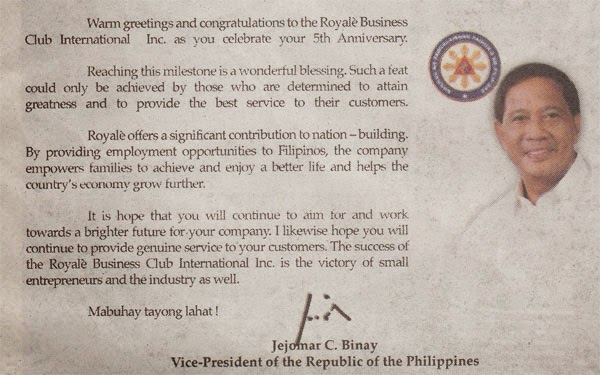 Try to listen and understand the wisdom behind our company’s simple and doable options and solutions to combat poverty, and why how this company was able to help ordinary people earn extraordinary income, changed their lives for the better and how Royale Business Club continuously keep on producing humble and very disciplined business leaders.