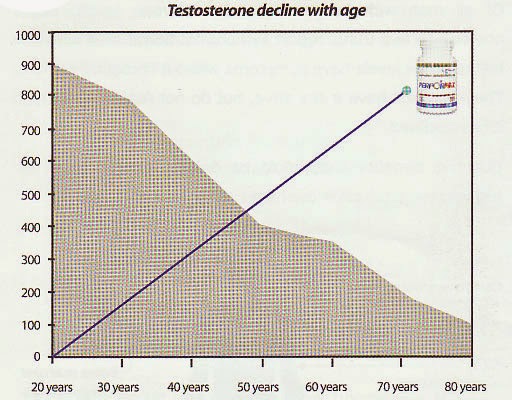 After the age of about 25, men’s testosterone begins to decline. Testosterone level in most 70 year old men is 10 percent of the level in males that are 25 years old.