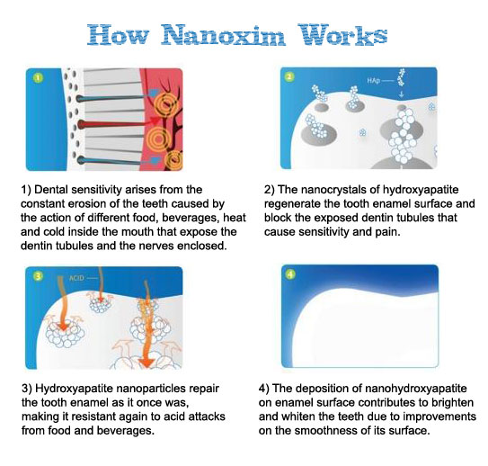 – helps reduce teeth sensitivity and increases teeth surface smoothness making teeth whiter and brighter by the deposition of the ingredients in the tooth’s enamel surface.