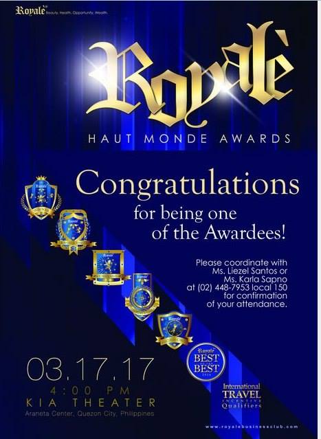 Thank you Lord for this award. To my family especially to my daughter, my I.T. specialist, uplines and business partners, thank you for all your support. Thank you Royale for making our dreams into reality.